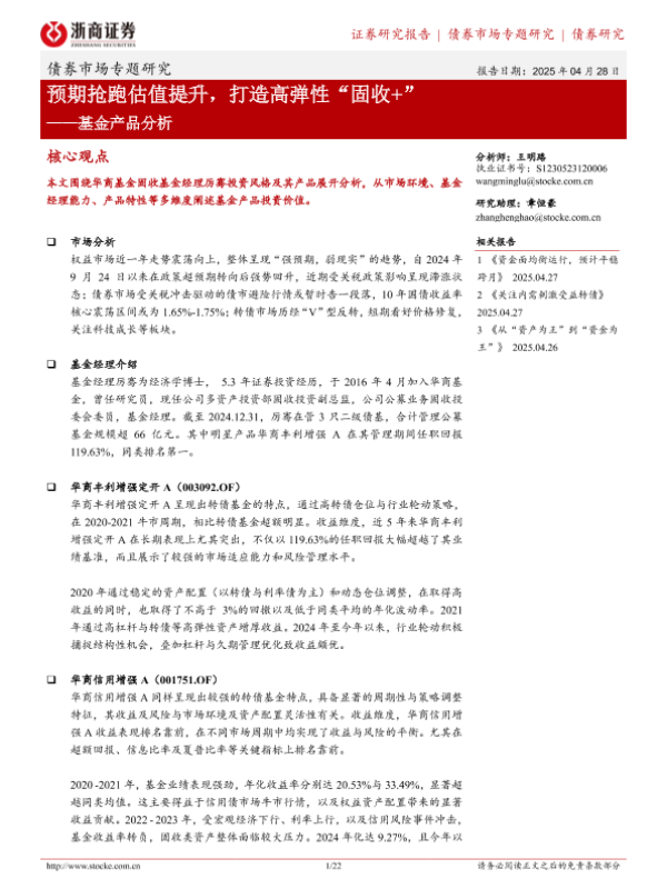 【浙商证券】【20250428】债券市场专题研究:预期抢跑估值提升,打造高弹性“固收+”—基金产品分析-22页