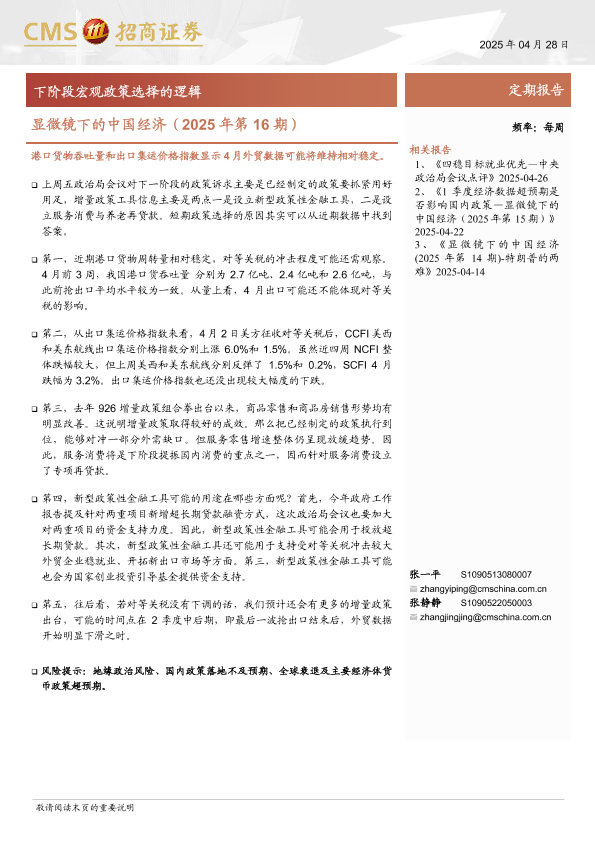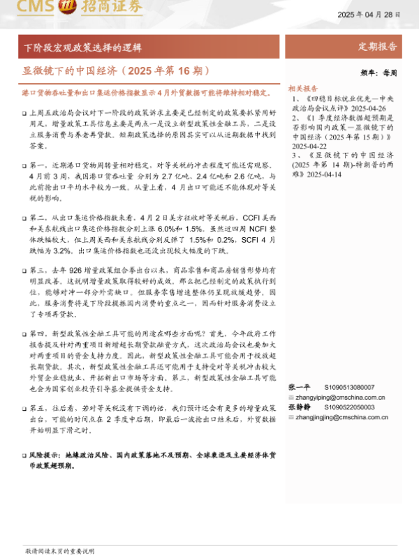 中国经济 出口集运价格指数 宏观政策 服务消费 港口货物吞吐量