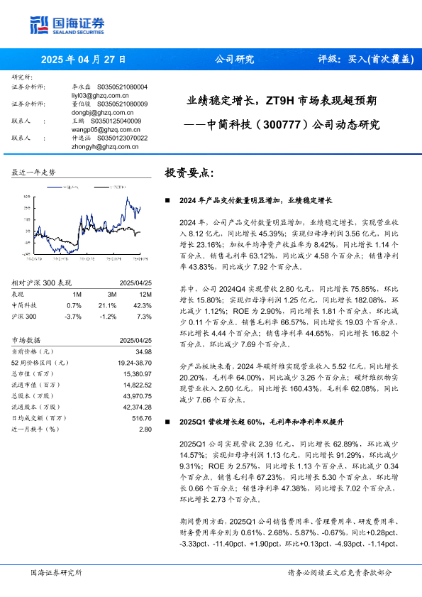 【国海证券】【20250427】中简科技公司动态研究:业绩稳定增长,ZT9H市场表现超预期-10页