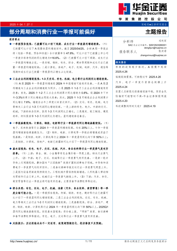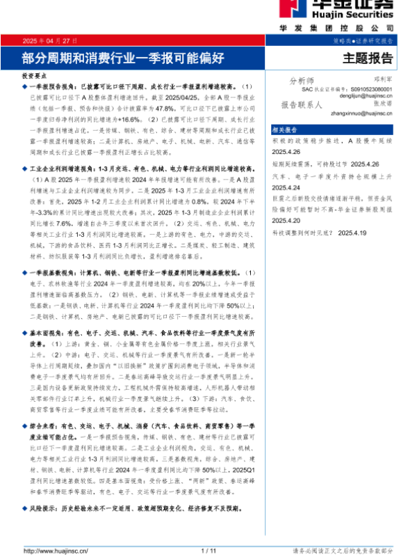 【华金证券】【20250427】部分周期和消费行业一季报可能偏好-11页