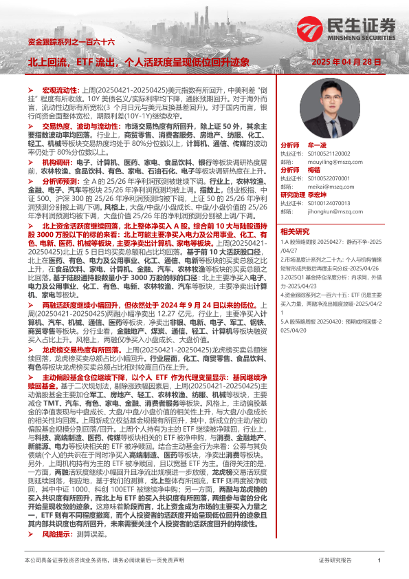 【民生证券】【20250428】资金跟踪系列之一百六十六:北上回流,ETF流出,个人活跃度呈现低位回升迹象-39页