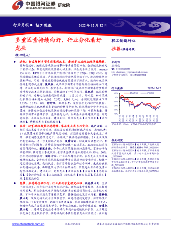 【银河证券】【20221212】轻工制造行业月报:多重因素持续向好,行业分化看好龙头-22页