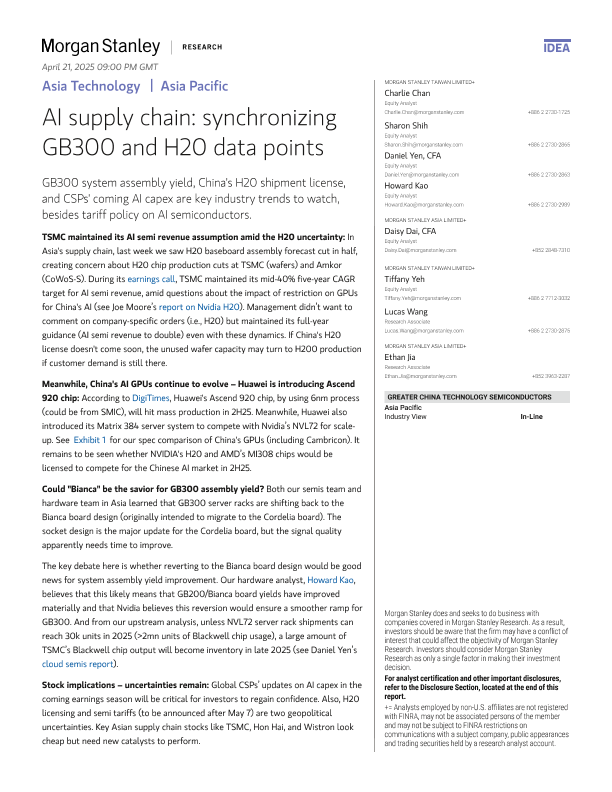 【Morgan Stanley】【2023】AI supply chain synchronizing GB300 and H20 data points-16页