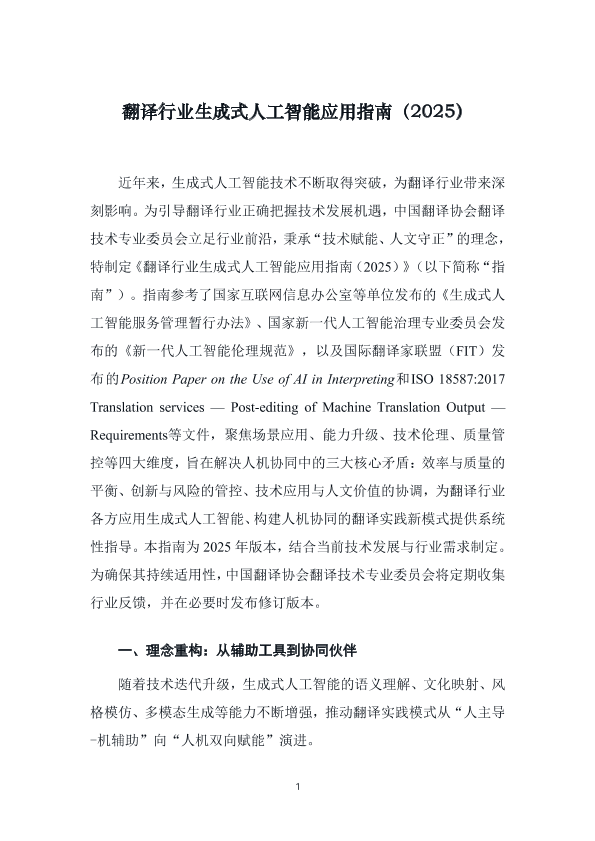 【中国翻译协会翻译技术专业委员会】【2025】翻译行业生成式人工智能应用指南-9页