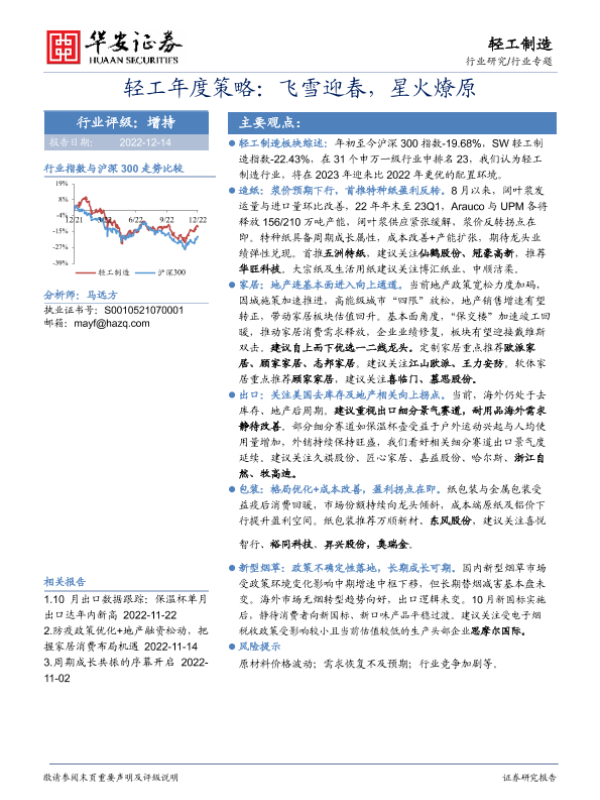 【华安证券】【20221214】轻工行业年度策略:飞雪迎春,星火燎原-42页
