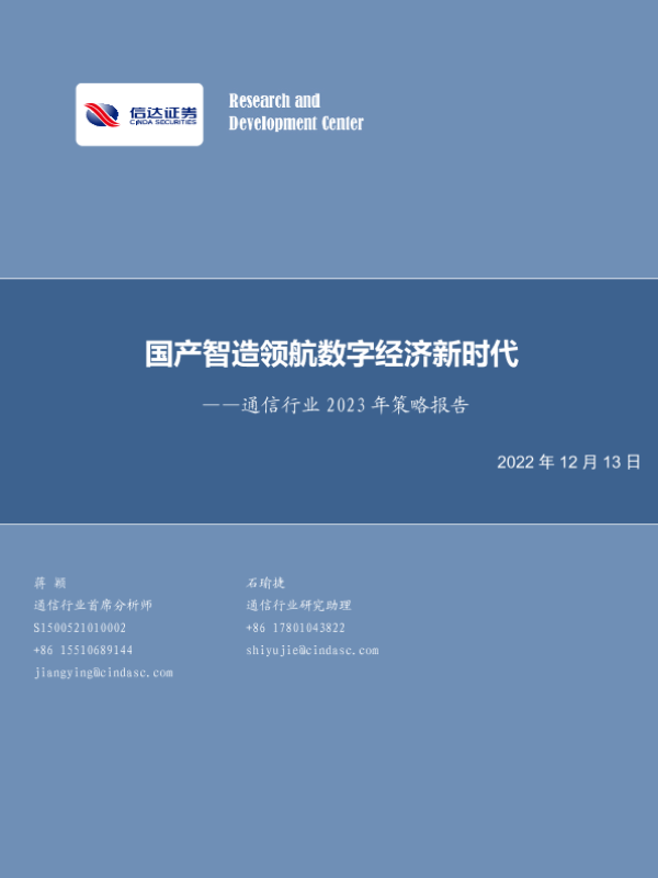 【信达证券】【20221213】通信行业2023年策略报告:国产智造领航数字经济新时代-69页