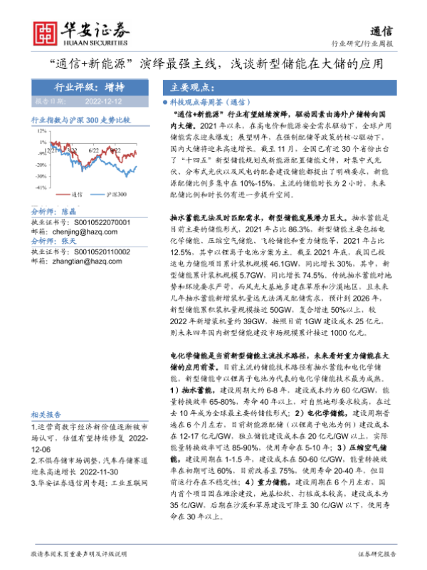 【华安证券】【20221212】通信行业周报:“通信+新能源”演绎最强主线,浅谈新型储能在大储的应用-16页