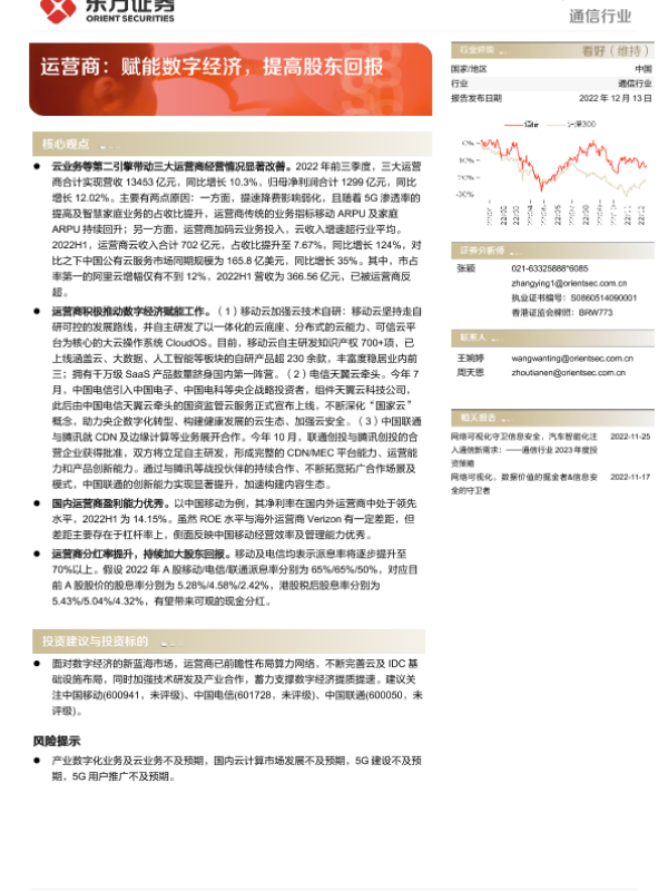 【东方证券】【20221213】通信行业深度报告:运营商:赋能数字经济,提高股东回报-15页