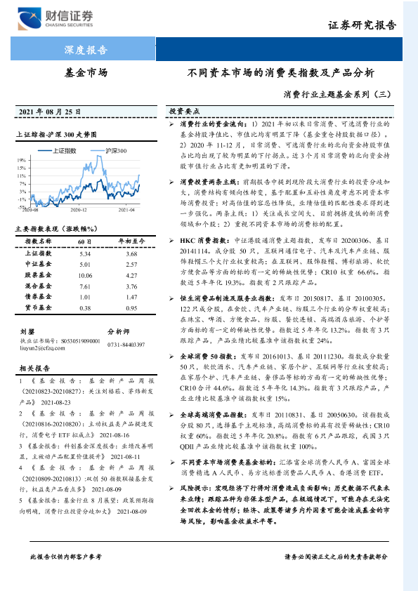 【财信证券】【20210825】消费行业主题基金系列(三):不同资本市场的消费类指数及产品分析-25页