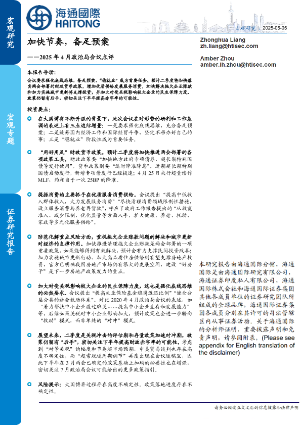 【海通国际】【20250426】2025年4月政治局会议点评:加快节奏,备足预案-11页