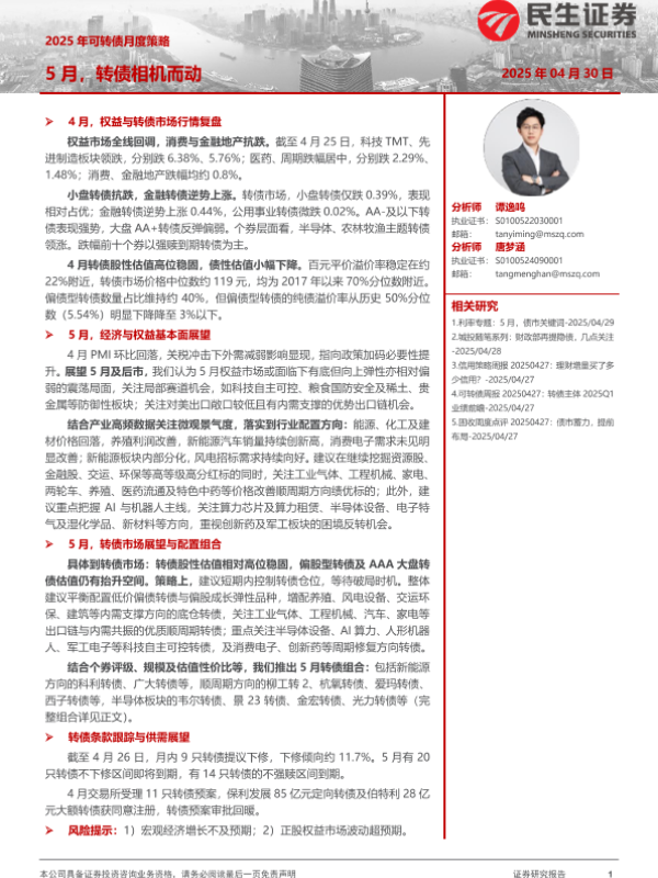 【民生证券】【20250430】2025年可转债月度策略:5月,转债相机而动-25页