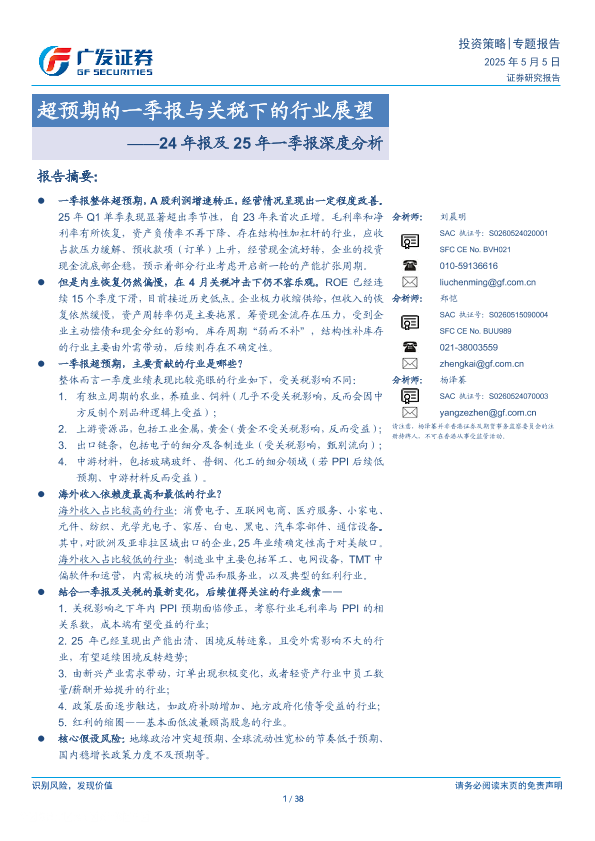 【广发证券】【20250505】24年报及25年一季报深度分析:超预期的一季报与关税下的行业展望-38页