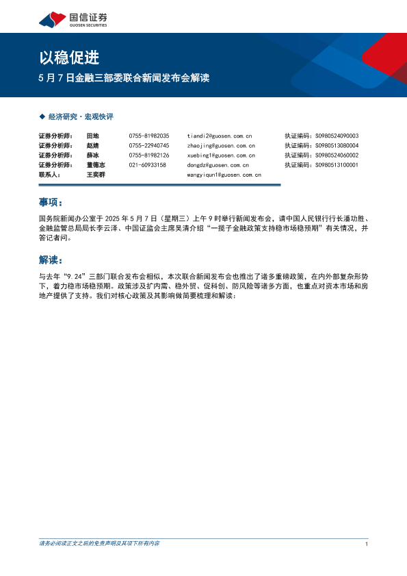 【国信证券】【20250507】5月7日金融三部委联合新闻发布会解读:以稳促进-10页
