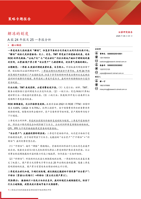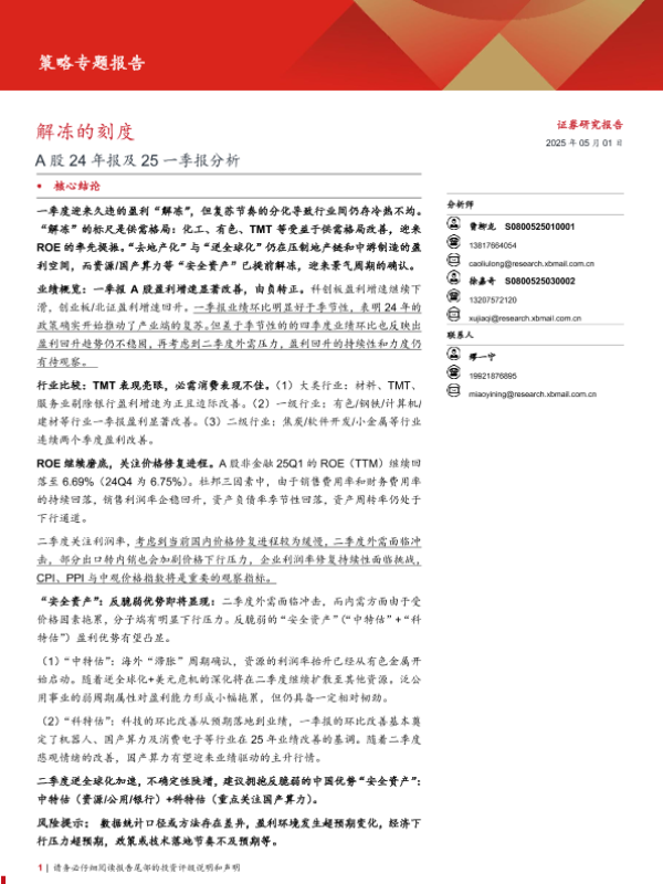 【西部证券】【20250501】A股24年报及25一季报分析:解冻的刻度-19页