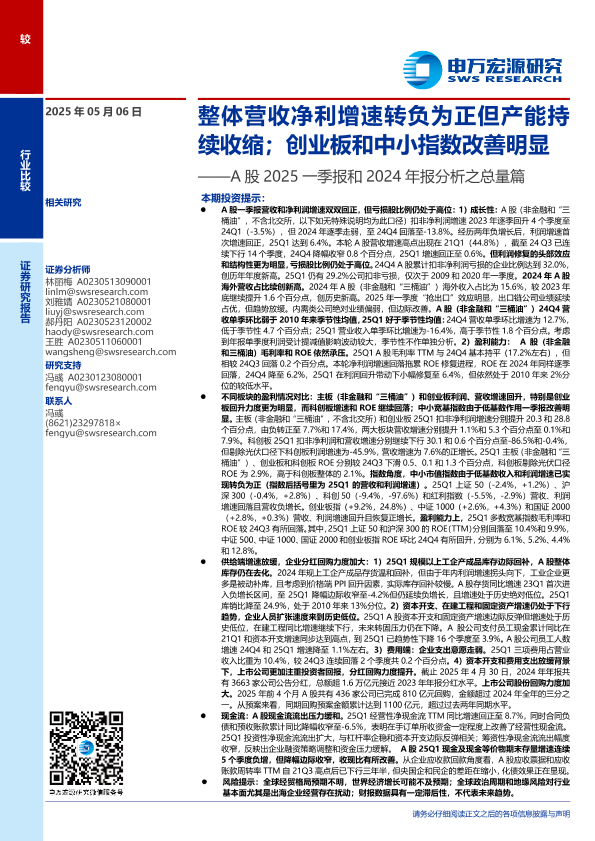 【申万宏源】【20250506】A股2025一季报和2024年报分析之总量篇-20页