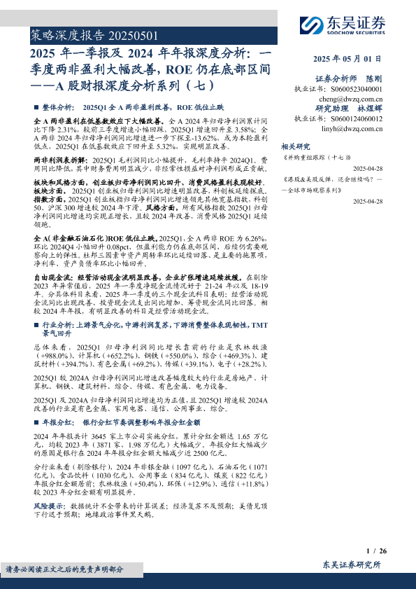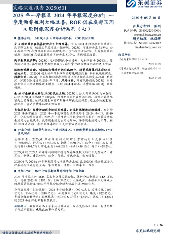 【东吴证券】【20250501】2025年一季报及2024年年报深度分析:一季度两非盈利大幅改善,ROE仍在底部区间-26页