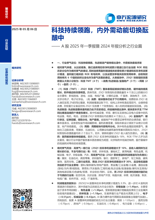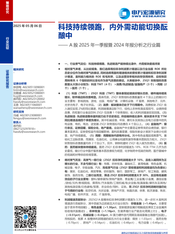 【申万宏源】【20250506】A股2025年一季报暨2024年报分析之行业篇:科技持续领跑,内外需动能切换酝酿中-34页