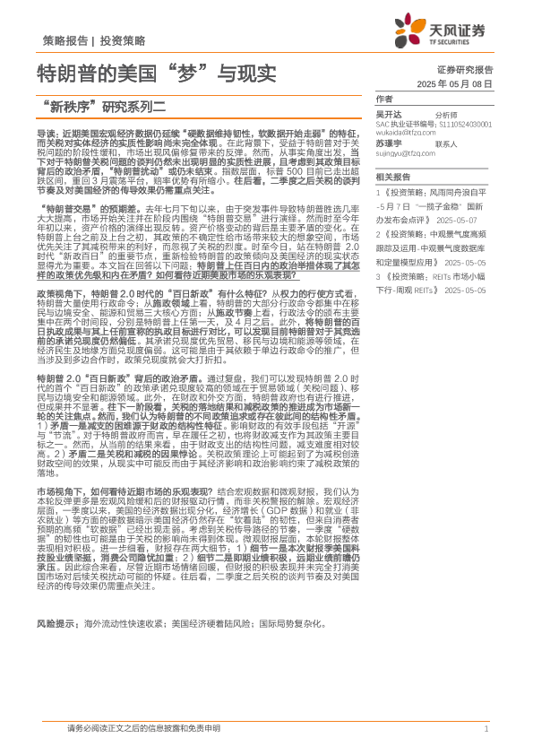 【天风证券】【20250508】“新秩序”研究系列二:特朗普的美国“梦”与现实-11页