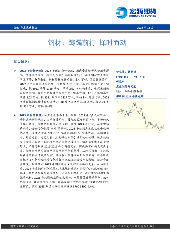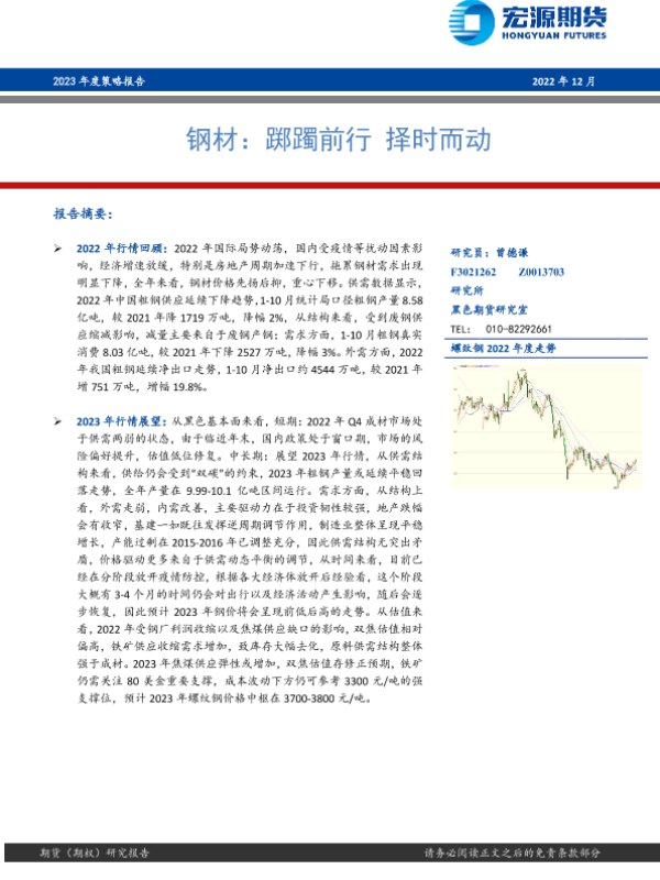 【宏源期货】【20221216】钢材2023年度策略报告:踯躅前行,择时而动-16页