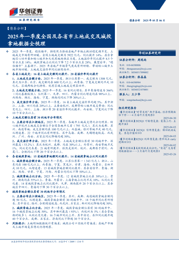 【华创证券】【20250506】2025年一季度全国及各省市土地成交及城投拿地数据全梳理-13页