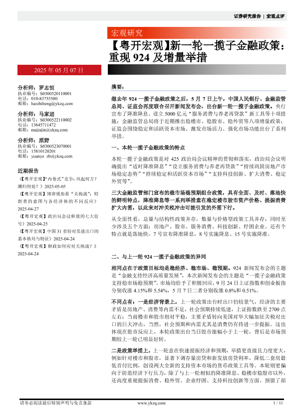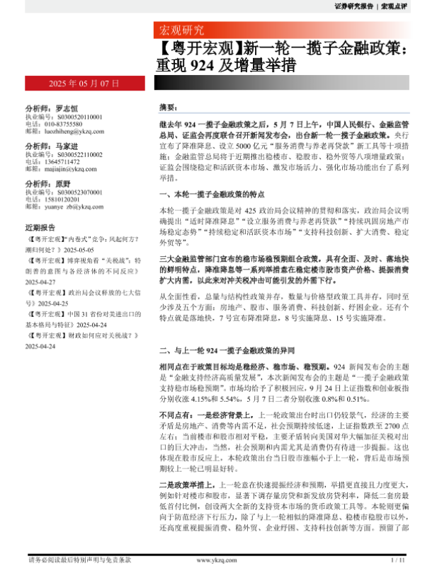 【粤开证券】【20250507】新一轮一揽子金融政策:重现924及增量举措-11页
