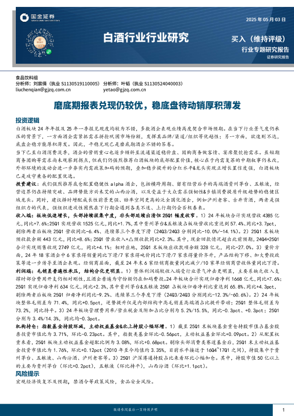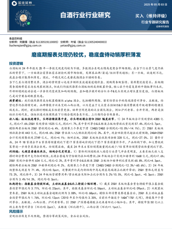 【国金证券】【20250503】白酒行业专题研究报告:磨底期报表兑现仍较优,稳底盘待动销厚积薄发-23页