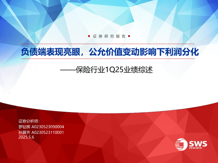 【申万宏源】【20250506】保险行业1Q25业绩综述-26页