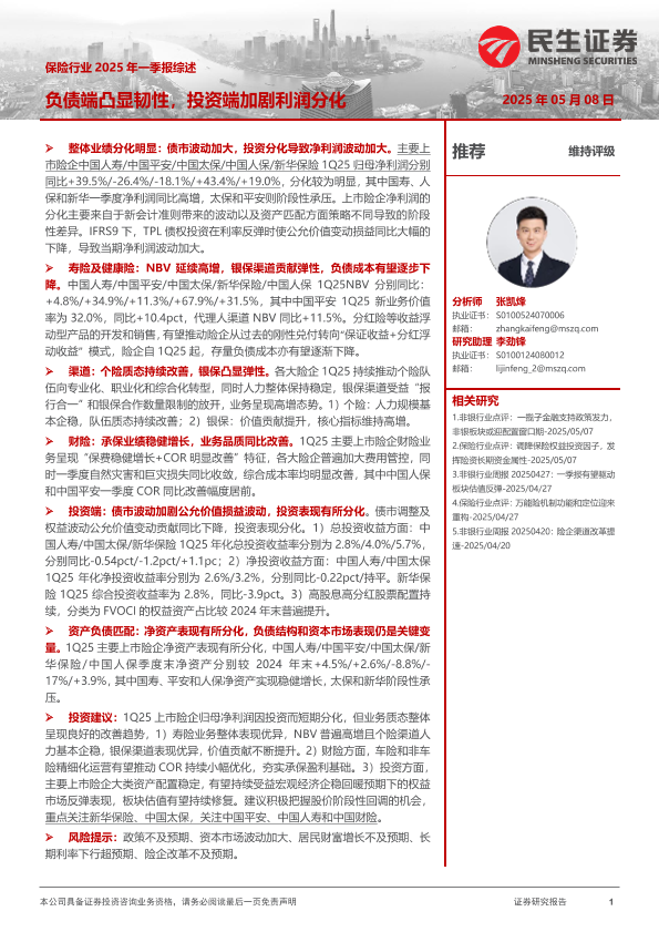 【民生证券】【20250508】保险行业2025年一季报综述-21页