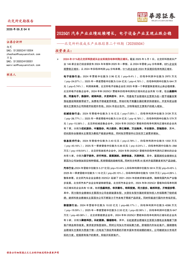 业绩分析 北交所 汽车产业 电子设备 科技成长