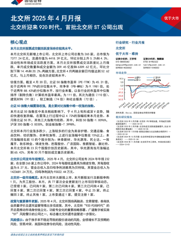 【国信证券】【202504】北交所2025年4月月报:北交所迎来920时代,首批北交所ST公司出现-34页