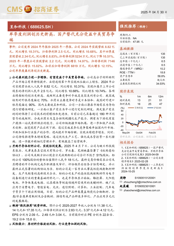 中美贸易争端 单季度利润 呈和科技 国产替代 高分子材料助剂