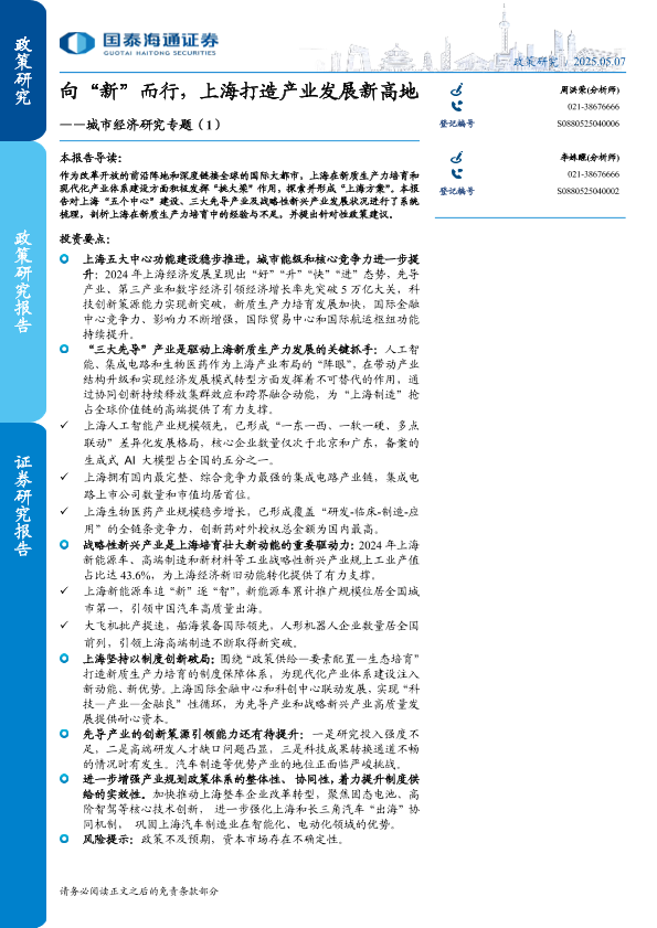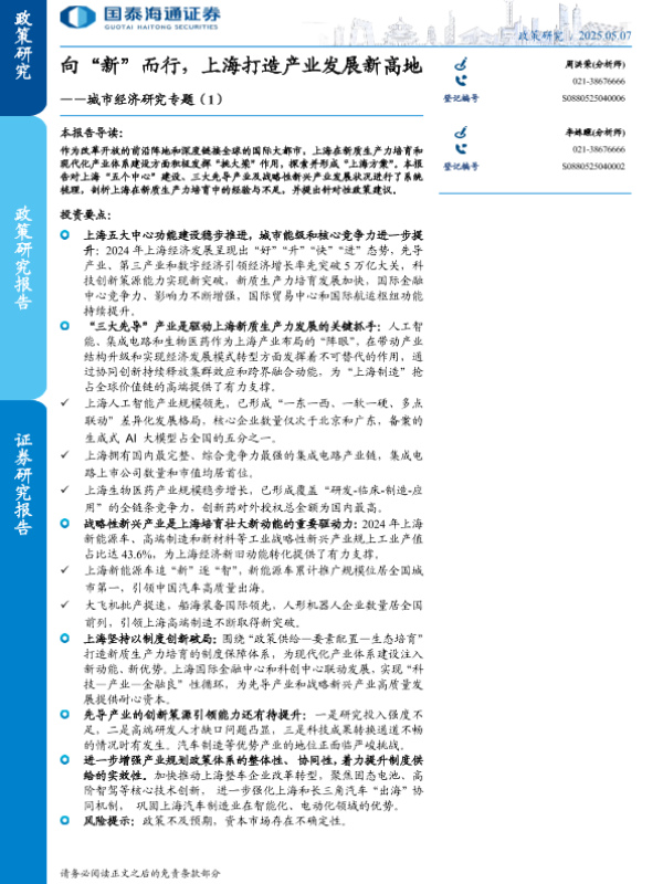 【国泰海通证券】【20250507】城市经济研究专题(1):向“新”而行,上海打造产业发展新高地-30页