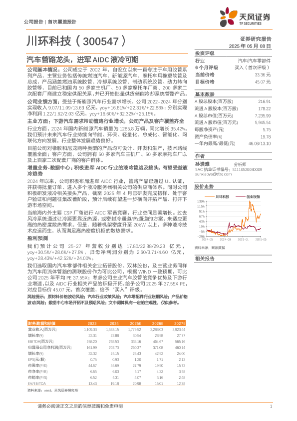 【天风证券】【20250508】川环科技汽车管路龙头,进军AIDC液冷可期-19页