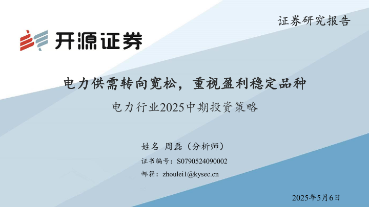 【开源证券】【20250506】电力行业2025中期投资策略-57页