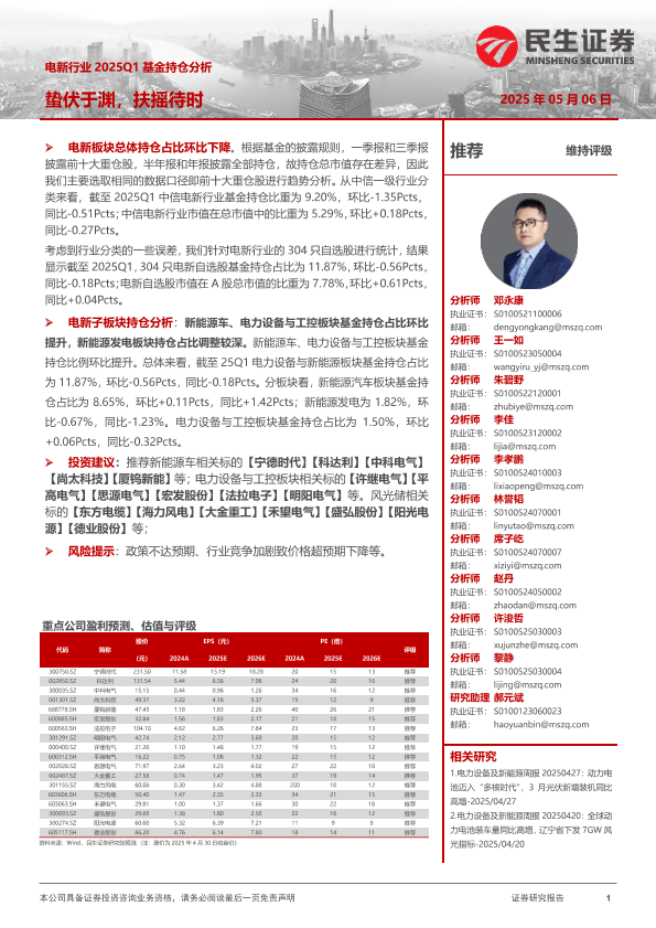 【民生证券】【20250506】电新行业2025Q1基金持仓分析:蛰伏于渊,扶摇待时-14页