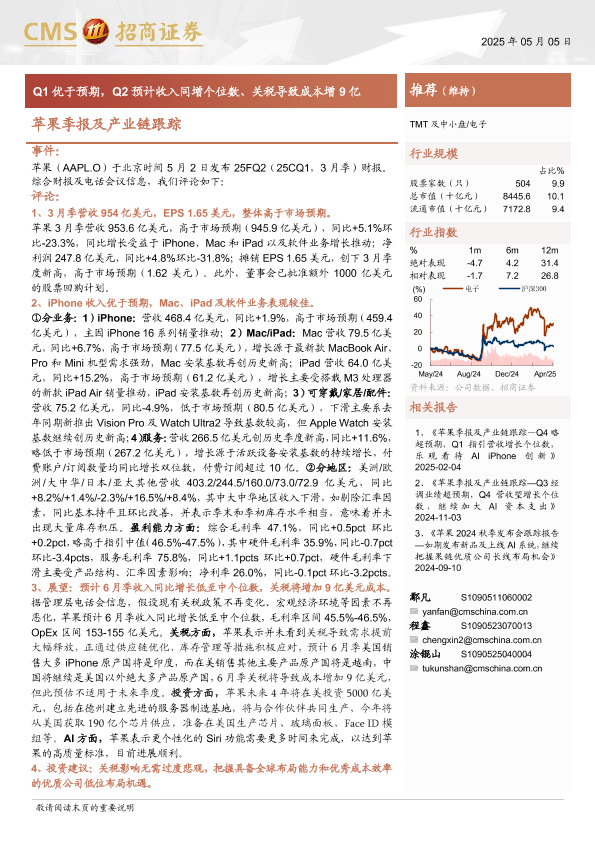 【海通证券】【20250505】电子行业苹果季报及产业链跟踪:Q1优于预期,Q2预计收入同增个位数-12页