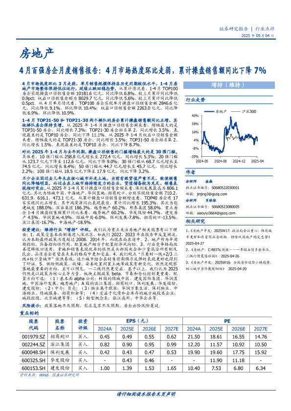 【国盛证券】【202504】4月百强房企月度销售报告:4月市场热度环比走弱,累计操盘销售额同比下降7%-10页