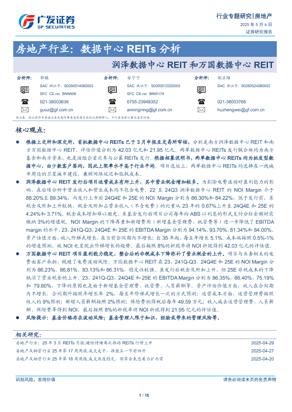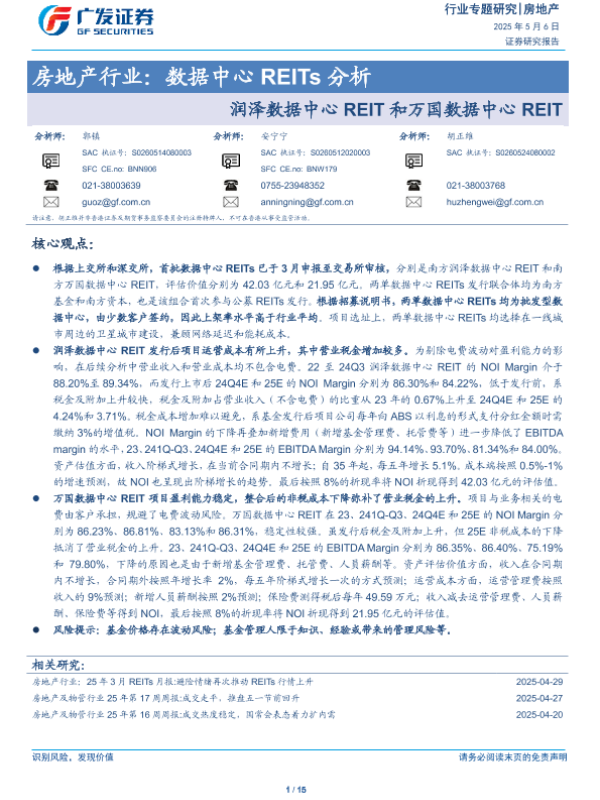 【广发证券】【20250506】房地产行业数据中心REITs分析:润泽数据中心REIT和万国数据中心REIT-15页