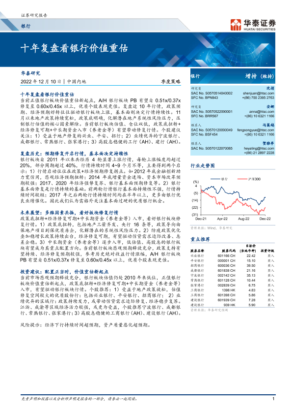 【华泰证券】【20221210】银行业季度策略:十年复盘看银行价值重估-31页