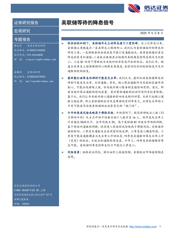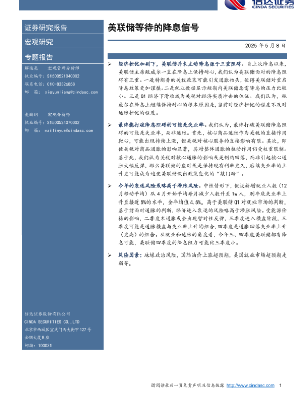 【信达证券】【20250508】美联储等待的降息信号-10页