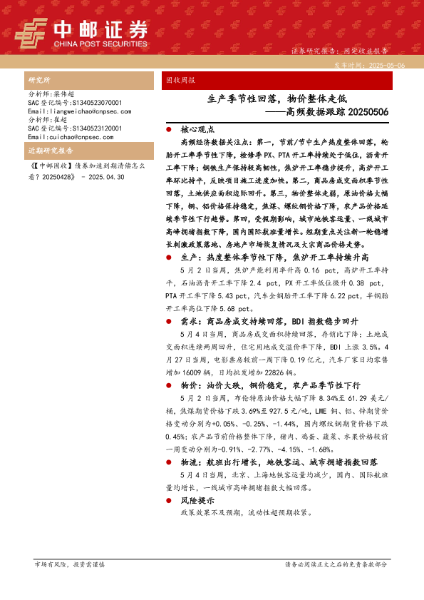 【中邮证券】【20250506】生产季节性回落,物价整体走低-13页