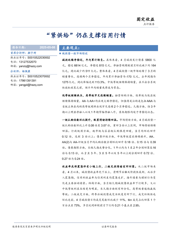 【华安证券】【20250508】“紧供给”仍在支撑信用行情-18页