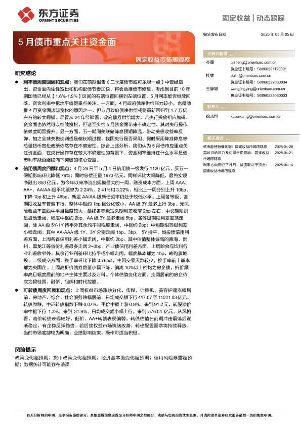 【东方证券】【20250505】固定收益市场周观察:5月债市重点关注资金面-20页