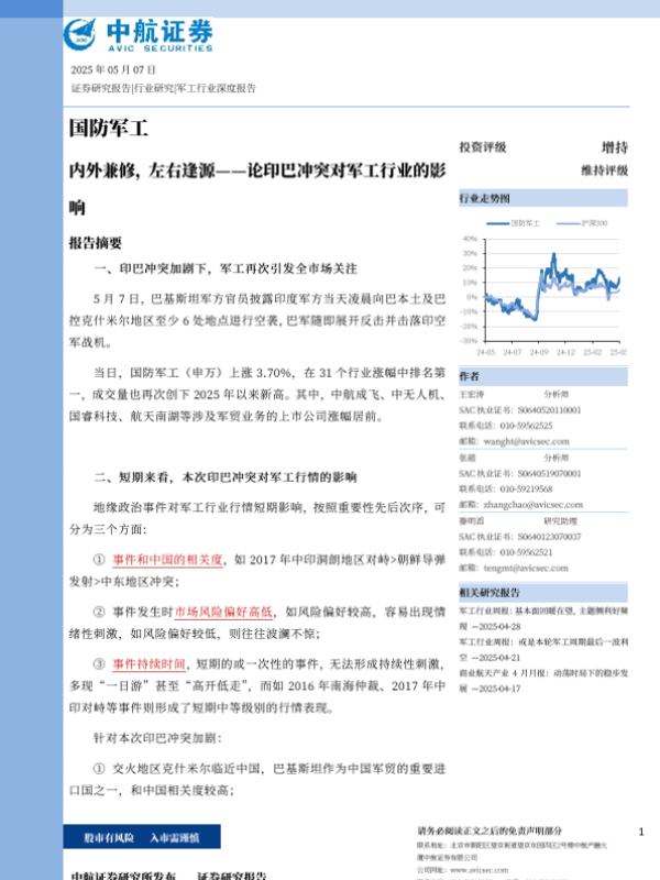 【中航证券】【20250507】国防军工行业:论印巴冲突对军工行业的影响,内外兼修,左右逢源-27页