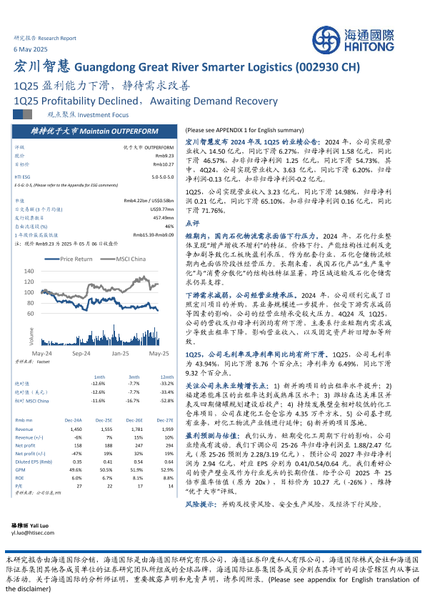 【海通国际】【20250506】1Q25盈利能力下滑,静待需求改善-12页