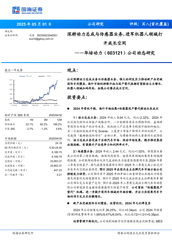 【国海证券】【20250501】华培动力(603121)公司动态研究:深耕动力总成与传感器业务,进军机器人领域打开成长空间-12页