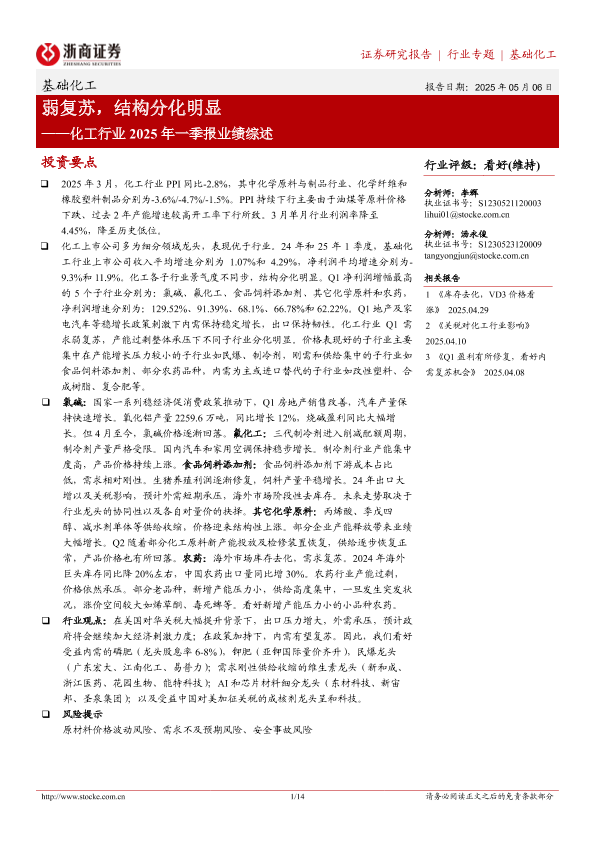 【浙商证券】【20250506】化工行业2025年一季报业绩综述-14页