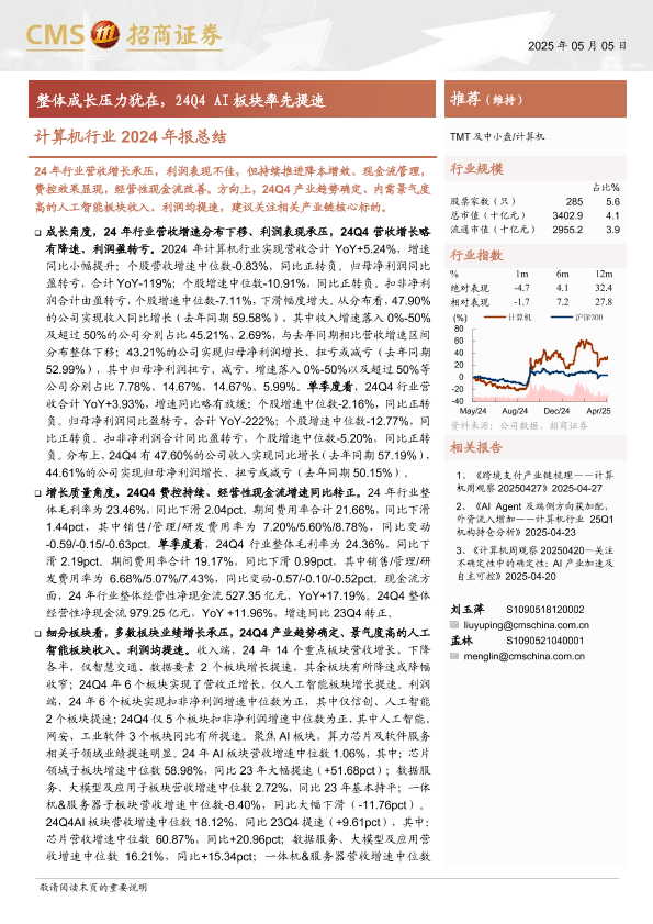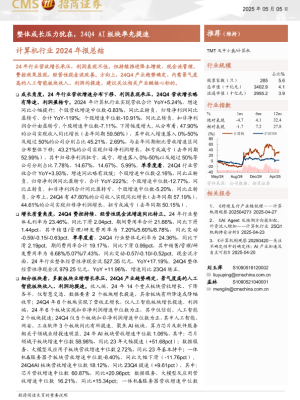 2024年报 AI板块 现金流管理 营收增长 计算机行业
