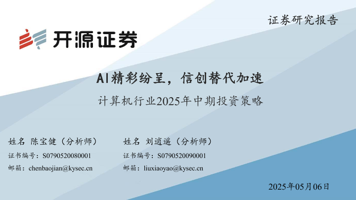 【开源证券】【20250506】计算机行业2025年中期投资策略:AI精彩纷呈,信创替代加速-56页