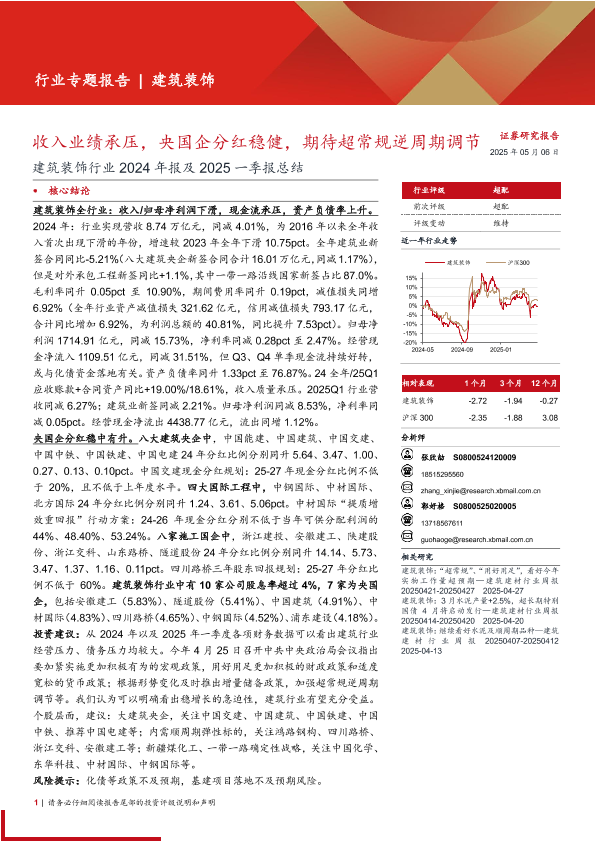 央国企分红 建筑装饰 收入业绩 财务分析 逆周期调节